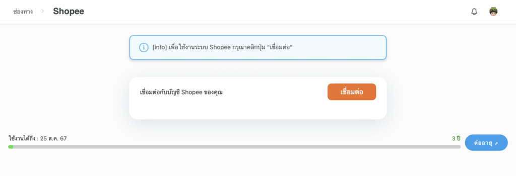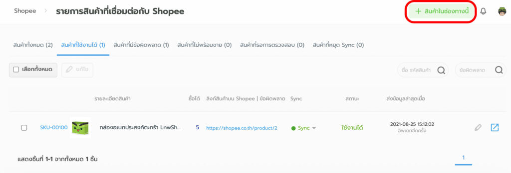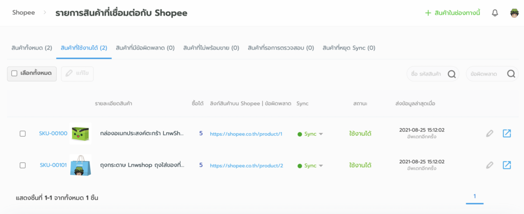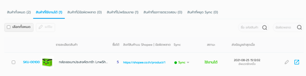 - ใช้งานได้ : สินค้ามีการเชื่อมต่อกับ Shopee เรียบร้อย