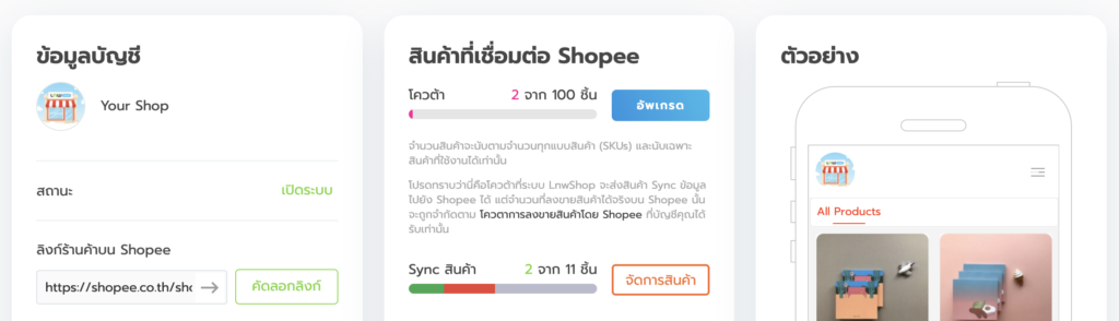 - เชื่อมต่อกับบัญชี LnwShop Pro กับ Shopee