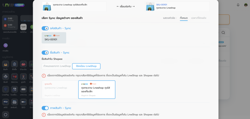 - เชื่อมต่อสินค้าระหว่าง LnwShop Pro และ Shopee