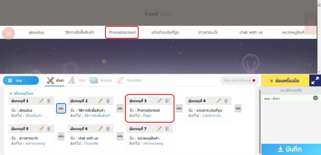 เมนูได้ตามต้องการ เมื่อเรียบร้อยแล้วกดบันทึก