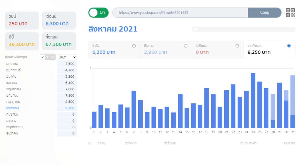- หน้า Dashboard สำหรับ Partner: Partner แต่ละคนจะสามารถดูผลลัพธ์ทั้งจำนวนออเดอร์และยอดขายที่เกิดขึ้น