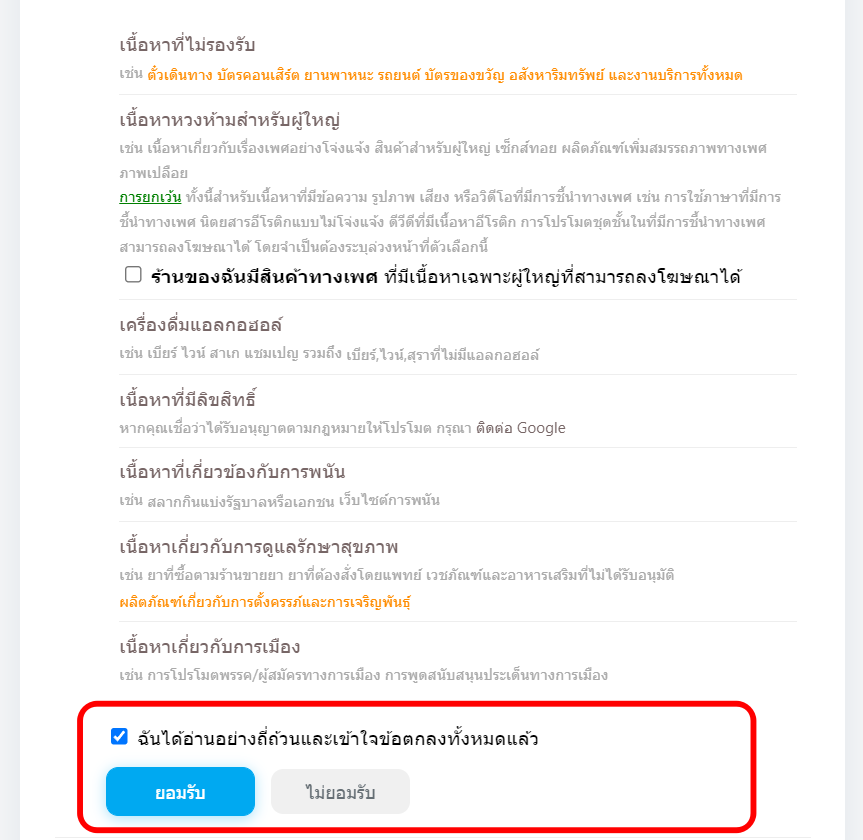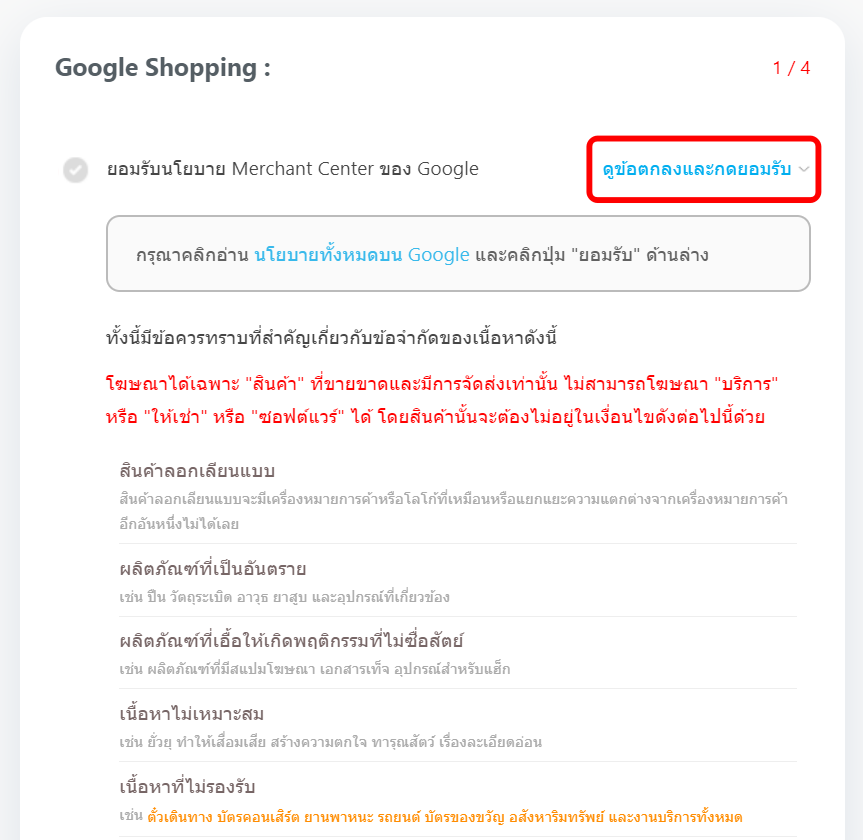 1. ยอมรับนโยบาย Merchant Center ของ Google