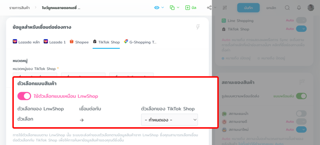 แบบที่ 3 : เชื่อมต่อสินค้าระหว่าง LnwShop Pro และ TikTok Shop