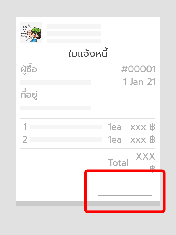 1. ลายเซ็นผู้แจ้งหนี้ – สามารถเลือกได้ว่า จะซ่อนลายเซ็น, แสดงช่องว่าง สำหรับเซ็น หรือแสดงภาพลายเซ็น