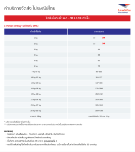 ไปรณีย์ไทยจะมีการคิดค่าบริการจากน้ำหนักจริงของพัสดุ ตามตารางด้านล่าง