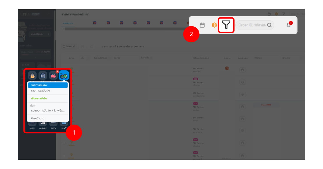 หมายเหตุ : การพิมพ์คำค้นหาควรสะกดให้ถูกต้อง ตามชื่อวิธีการจัดส่งที่ผู้ซื้อเลือกจากฝั่ง Marketplace เช่น การใช้ตัวอักษรพิมพ์เล็ก-พิมพ์ใหญ่, การเว้นวรรค, การใช้เครื่องหมายต่าง ๆ